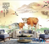 TRANH 3D CON BÒ PHỐI CẢNH human-804481