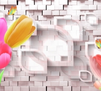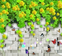 TRANH 3D TƯỜNG HOA LÁ (TƯỜNG GẠCH VÀ HOA) humandecor----6290